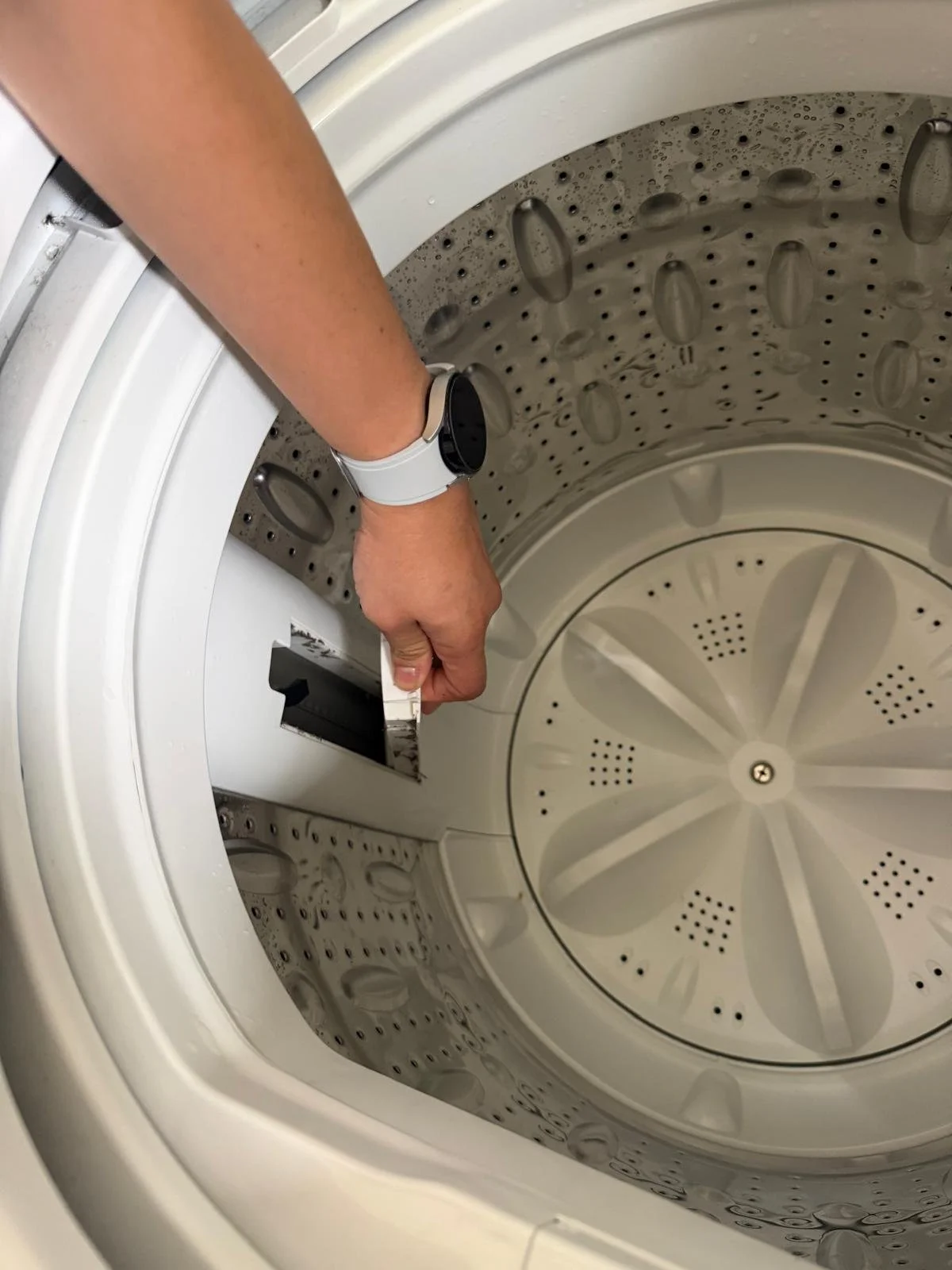 Quick check: make sure it’s firmly clicked/held in place so it won’t float loose during the wash.