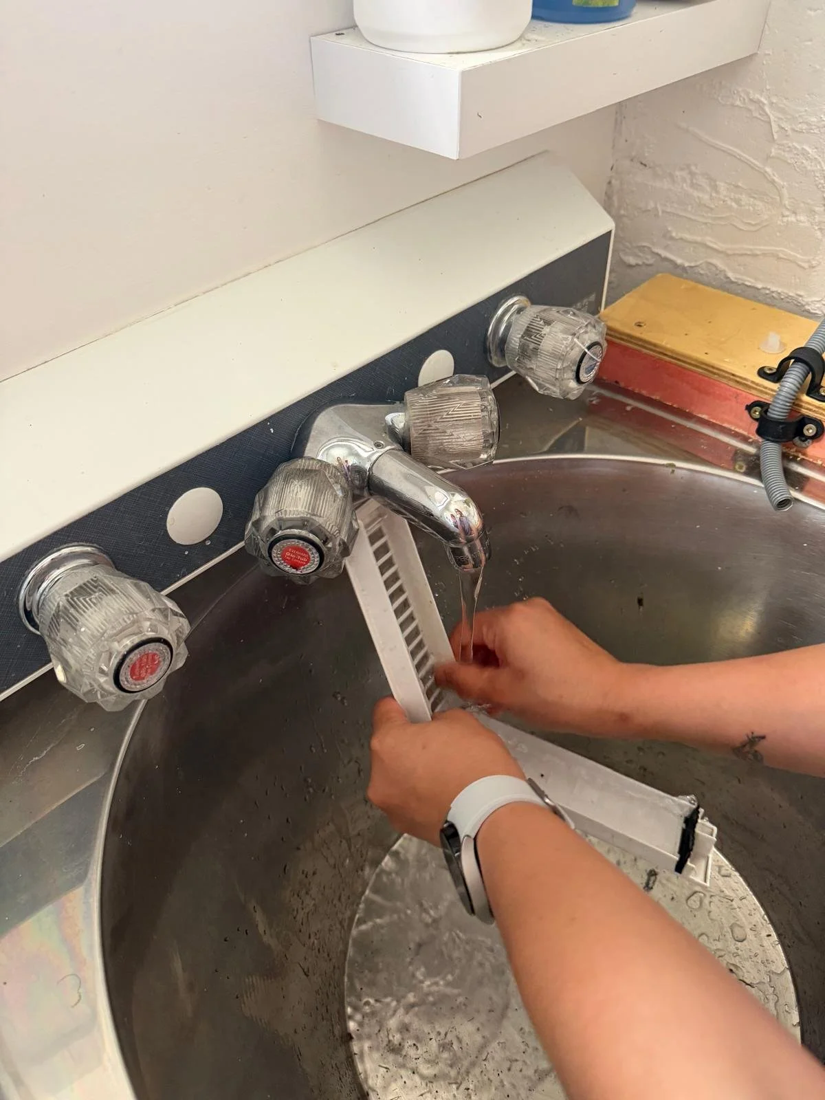 4. Rinse the filter under the tap and give it a quick rub to clear the mesh.